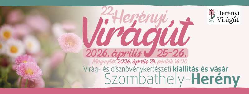 Programok: Látogass el a 22. Herényi Virágútra, merülj el a virágos forgatagban, kóstold meg a vásári ételeket, italokat és élvezd a változatos kulturális, szórakoztató, gyermek programjainkat! A Herényi Kulturális és Sportegyesület szimbolikus nagy rendezvényévé vált Herényi Virágút, amely elnyerte el a Nyugat-Dunántúl Kiemelt Kulturális és Örökségturisztikai Rendezvénye címet. A program célja a helyben élő, illetve tevékenykedő kertészeteknek bemutatkozási és értékesítési lehetőség biztosítása a nagyközönség előtt. Emellett fontos cél a hagyományok ápolása, népművészeti értékek terjesztése, valamint a virágosítás népszerűsítése és egy kellemes szabadidős, kulturális program biztosítása a látogatók részére szélesebb körben, határon innen és túl.
